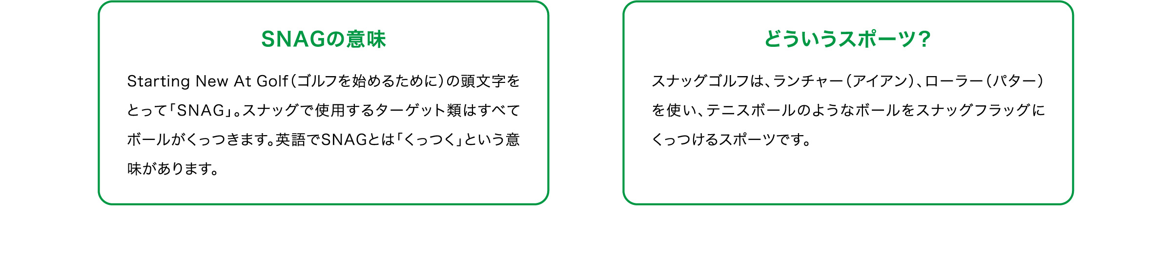 スナッグゴルフは2001年から元PGAツアープレイヤーのテリー・アントンとウォーリー・アームストロングによって開発された、 ゴルフの基本を学ぶことができるスポーツです。